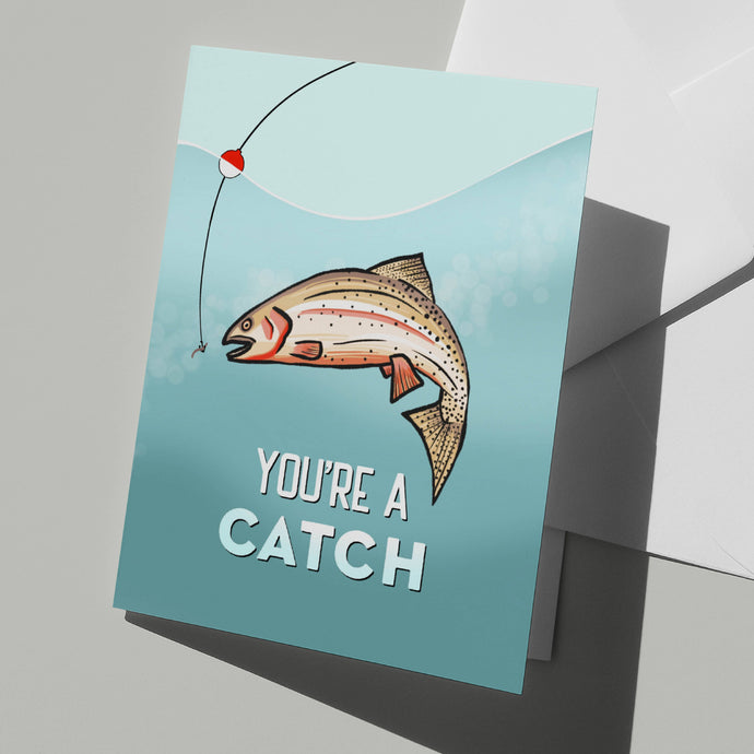 • "You're A Catch" Greeting Card – Featuring a Hand-Drawn Cutthroat Trout - By: Creatively Leanne