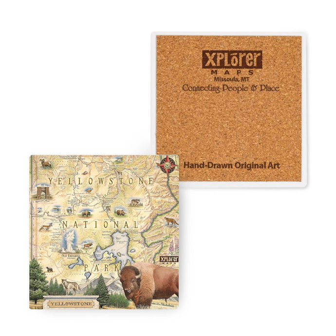 Yellowstone National Park Map Ceramic Coaster - By: XPLORER MAPS