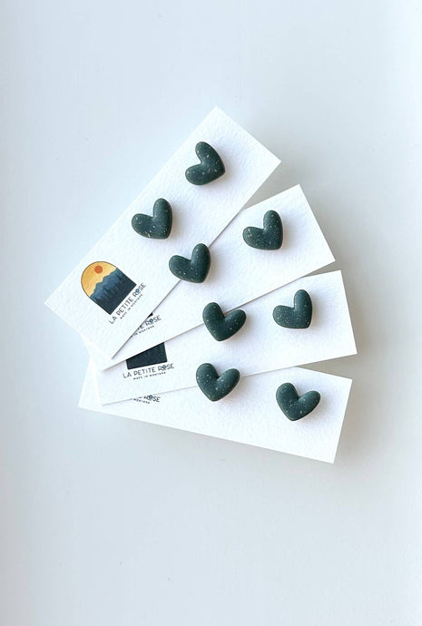 Forest Green Heart Earrings, Love Clay Studs - By: La Petite Rose